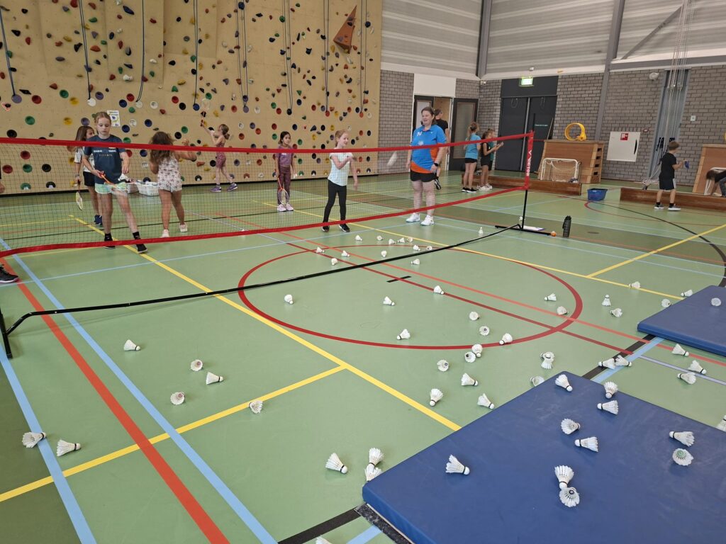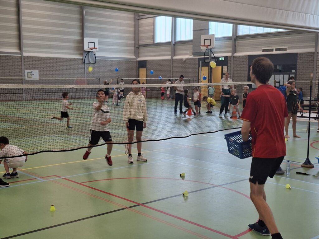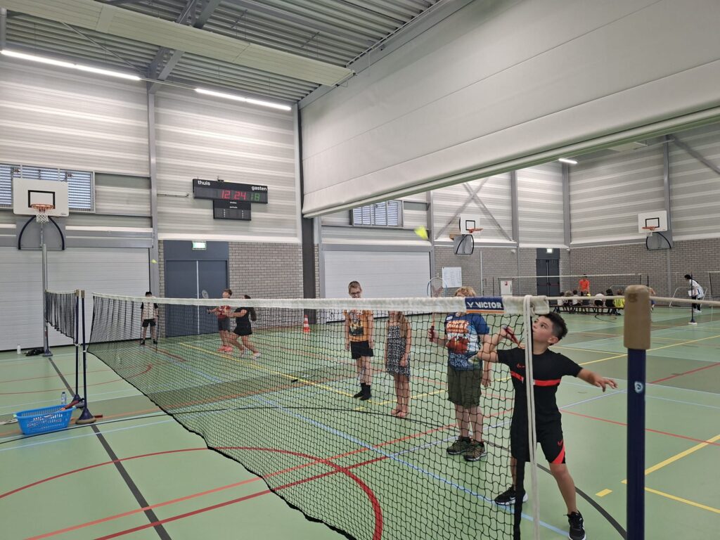 In verschillende groepjes speelden de kinderen fanatiek allerlei leuke badminton-spelletjes. Tussen de activiteiten door was er tijd voor een welverdiende pauze met limonade en een krentenbol.