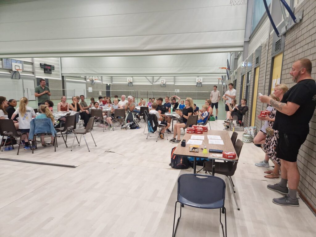 Op zaterdag 14 juni vond het gezellige HBV Familie-Toernooi plaats als feestelijke afsluiter van het seizoen 2024-2025. HBV-Leden namen het samen met hun introducees op tegen andere duo’s in sportieve, leuke wedstrijden. Er werd fanatiek gebadmintond en veel gelachen.