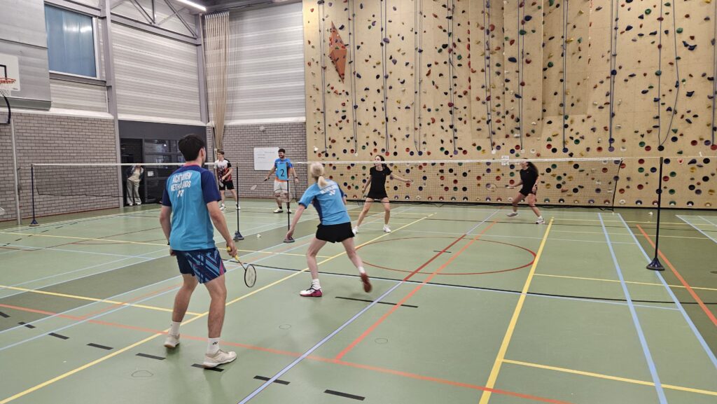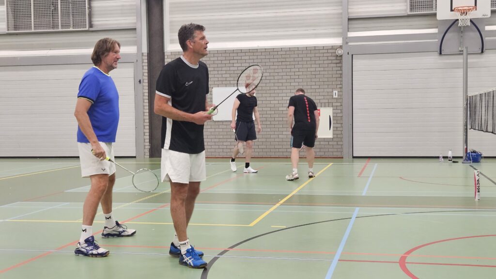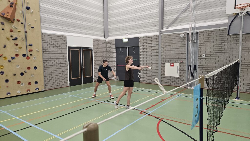 De reünie begon sportief met een groep van 20 fanatieke oud-leden die de badmintonrackets weer oppakten. Na jaren van afwezigheid was de strijd op de baan intens en vol plezier. De spieren werden weer flink aan het werk gezet, en voor sommigen was het wel even doorbijten na al die jaren. Dat leverde de nodige zweetdruppels en lachende gezichten op! Na een spannende strijd mochten Rik en Michiel zich de terechte winnaars van het toernooitje noemen.